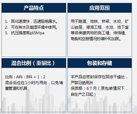 KM-505是以環(huán)氧樹脂為主劑,與增塑劑、促進(jìn)劑、固化劑等原料配合使用的加固類灌漿材料;通過專用之壓力灌漿設(shè)備,可深達(dá)結(jié)構(gòu)體極細(xì)微之裂縫;硬化后具有極強(qiáng)的粘合力,從而使結(jié)構(gòu)體恢復(fù)其整體性,以達(dá)到防水止漏和結(jié)構(gòu)補(bǔ)強(qiáng)的雙重效果。